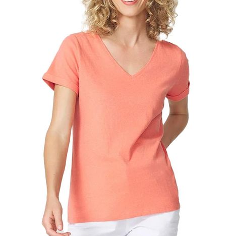 Optez pour le t-shirt de la marque TBS !Coloris : CorailCol VManches courtes avec reversComposition: 2% Fibres Métalliques,98% Coton