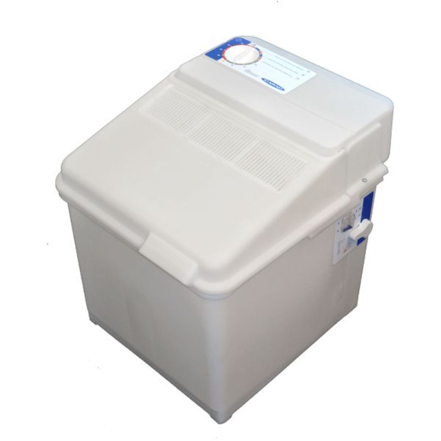 Pour la faire fonctionner, rien de plus simple : remplissez la machine avec de l'eau (chaude pour les vêtements très sales), démarrez le programme de lavage, effectuez le rinçage, puis essorez manuellement, videz la machine avec l'évacuation prévue et mettez ensuite la machine sur séchage. La molette de sélection du programme est située sur le côté de l'appareil, vous devrez tourner cette molette pour enclencher les différentes étapes de lavage.