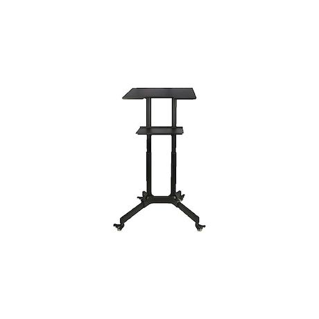 Le support mobile ergonomique Techly est conçu pour améliorer votre confort au bureau. Fabriqué en métal de haute qualité, ce support robuste offre une stabilité optimale. Sa hauteur est réglable de 1030 à 1250 mm pour permettre une utilisation en position assise ou debout. Il dispose d'une étagère principale inclinable de 0 à 40° ainsi que d'une étagère inférieure pour le rangement. Equipé de roulettes, ce support est facilement déplaçable pour s'adapter à vos besoins. Son design moderne et sobre en noir s'intègre parfaitement dans un espace de travail professionnel. Le poids total du support est de 16.2 kg et ses dimensions d'étagère principale sont 600 x 400 mm, avec une étagère inférieure de 400 x 213 mm.