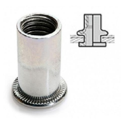 40 écrous M4 à sertir acier avec tête plate.Epaisseur à sertir : 3 mm, longueur filetage : 6 mm.Rivets creux taraudés pour fixation démontable sur les toles, tubes, cornières, &hellip,