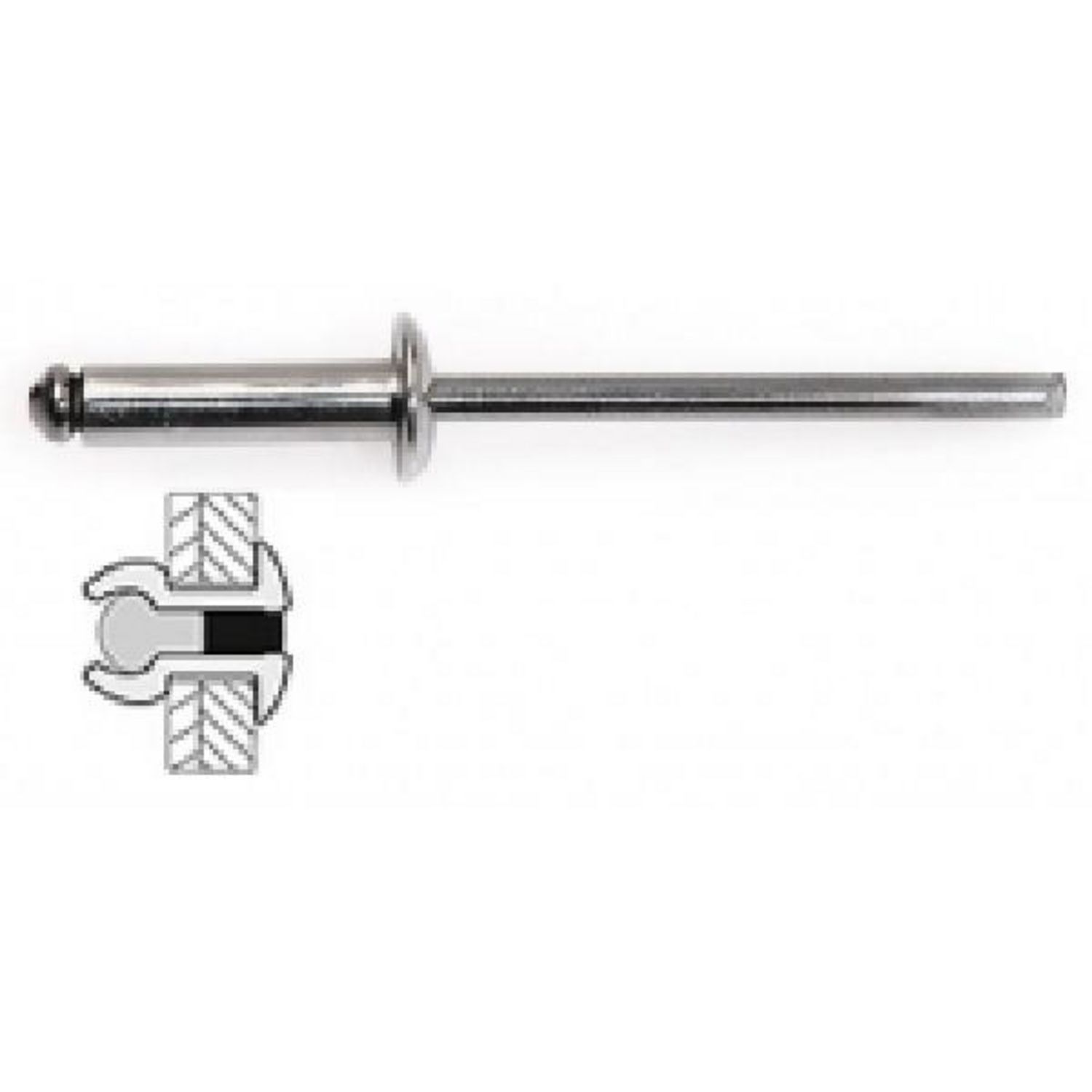 Diamètre x longueur : 4,8 x 10 mm, diamètre perçage : 4,9 mm, épaisseur à sertir : 4 à 6 mm.
