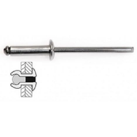 50 rivets acier / acier à tête plate.Diamètre x longueur : 4,8 x 10 mm, diamètre perçage : 4,9 mm, épaisseur à sertir : 4 à 6 mm.Matériaux : métal.Applications : forte résistance à l&rsquo,arrachement, inviolabilité.Par exemple : constructions métalliques, pose de verrous, mobilier métal, &hellip,