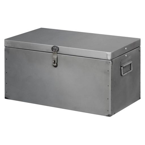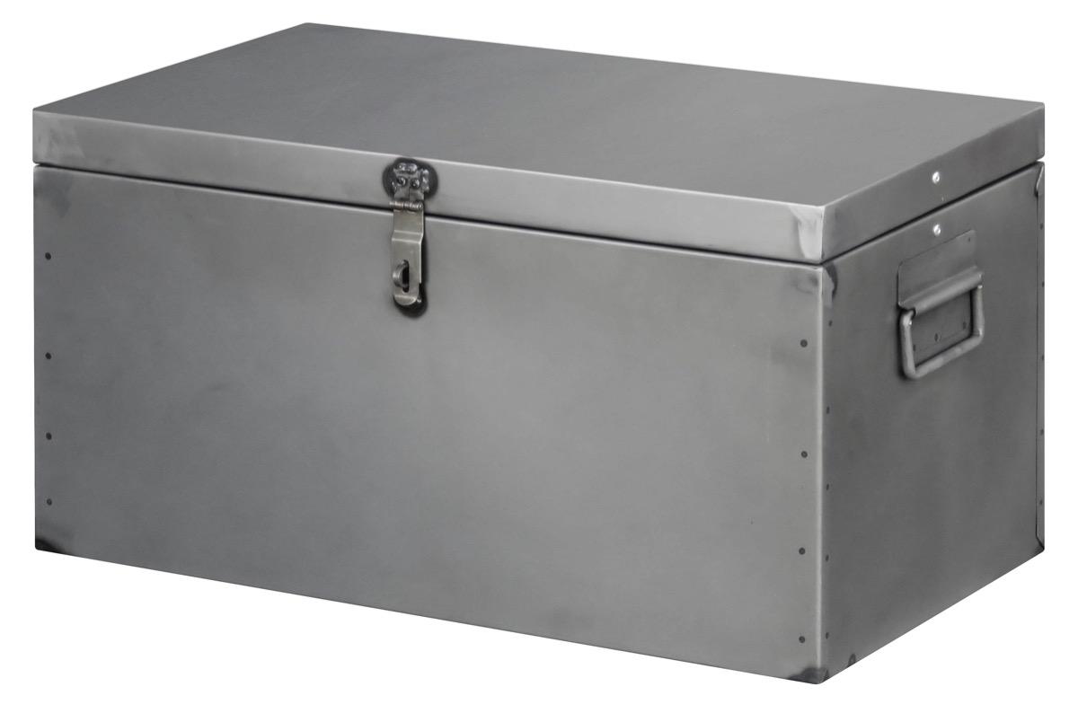 Design industriel pour ce coffre en acier avec couvercle.