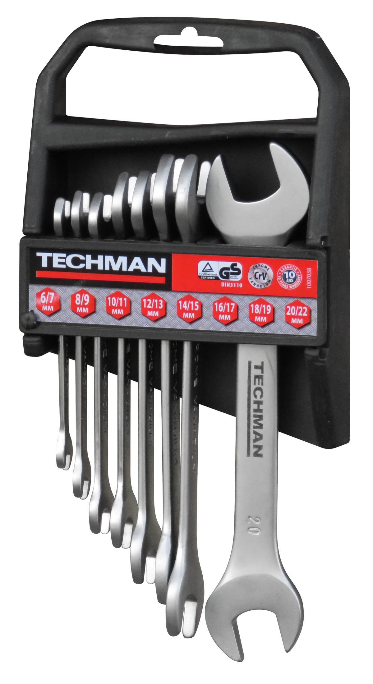 Jeu de 8 clés Doubles Fourches Industries: 6x7 / 8x9 / 10x11 / 12x13 / 14x15 / 16x17 / 18x19 / 20x22 mm