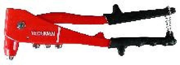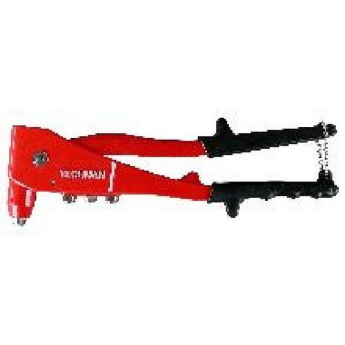 Corps en fonte d',aluminium. Poignées gainées. ChaÎne de verrouillage en position fermée. Livrée avec 4 buses et une clé de fixation. Pour rivets : 2,4 à 4,8 mm.