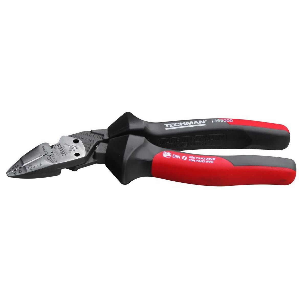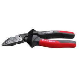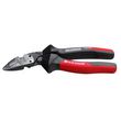 Tête effilée et coudée à 25° qui réduit considérablement les tensions du poignet, offre une meilleure visualisation du point de coupe et facilite les coupes à ras. Mâchoire multifonctions qui permet de couper les fils durs jusqu'à 2,5 mm gaines électriques Ø,14 mm, dénuder les fils électriques et sertir les cosses 1,5 et 2,5 mm2, couper les tiges filetées M3,5 et M4, et former des boucles pour connections vissées. En acier forgé de haute qualité. Tranchants de précision et matrice de sertissage durcis par induction. Poignées ergonomiques gainées avec grip confort antidérapant. Fabriquée en Allemagne.