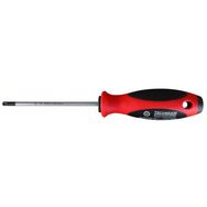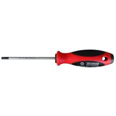 Lame 100mm. Manche 107 x 32 mm. Manche ergonomique en matériau doux antidérapant avec trou pratique pour le rangement. Forme triangulaire qui correspond parfaitement à l'angle de rotation de la main (120°), et qui empêche le tournevis de rouler lorsqu'il est posé. Lame acier inoxydable haute qualité