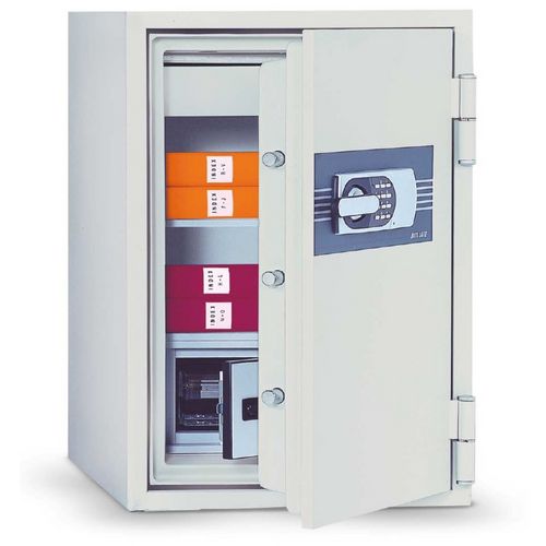 L'armoire ignifuge de Technomax est idéale pour la protection des papiers et supports sensibles. Ce coffre-fort dispose d'un volume de 55 litres, dont un caisson intérieur de 7 litres équipé d'un isolant thermique permettant la protection des supports magnétiques contre les champs magnétiques et les phénomènes électrostatiques. De plus ce coffre fort possède une haute protection contre le feu certifié NT FIRE 017.