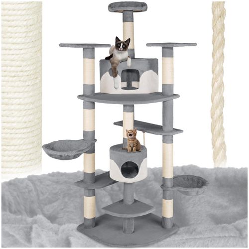Arbre à chat 201 cm avec griffoir et plateforme d'escalade gris/blanc