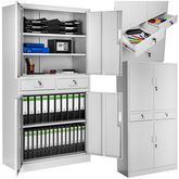 En savoir +Portez votre rangement à un nouveau niveau avec l'armoire à dossiers solide Cosmo de tectake. Cette armoire polyvalente est la solution d'organisation idéale pour l'entrepôt, les archives, le bureau, la cave, l'atelier et bien plus encore. La répartition pratique en deux compartiments d'armoire à cinq casiers avec étagères réglables en hauteur ainsi que les deux tiroirs offrent un espace de rangement important. Chaque compartiment est verrouillable individuellement, ce qui vous permet de ranger vos dossiers, objets de valeur ou documents non seulement de manière claire, mais aussi en toute sécurité - s'adapte parfaitement à tout concept d'espace : l'armoire en acier Cosmo de tectake, facile d'entretien.