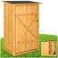 Armoire de Jardin Meuble Abri Cabane de Rangement à Toit Plat en Bois 75 cm x 56 cm x 118 cm Marron TECTAKE. Au secours, tous mes outils de jardin sont éparpillés partout !!! Ne vous inquiétez plus : avec cette cabane de jardin à toit plat, vous pouvez ranger tous vos accessoires de jardinage. Ce meuble de jardin est un espace de rangement résistant aux intempéries. Les petits ustensiles de jardinage sont parfaitement rangés sur les deux étagères. À côté des petites étagères, vous trouvez suffisamment de place pour ranger les objets de plus grande taille. La grande porte peut être fermée de manière sûre au moyen d'un verrou. Le toit plat de l'armoire de jardin est fait d'un revêtement en bitume résistant aux intempéries. Le toit légèrement incliné assure l'écoulement de l'eau.