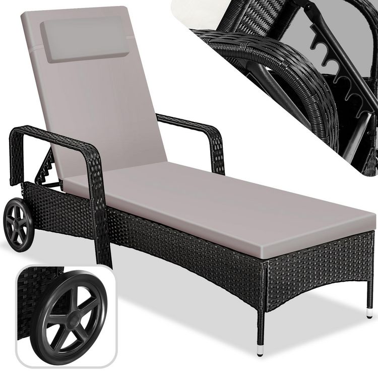 Bain de soleil Transat en rotin Avec cadre en aluminium noir
