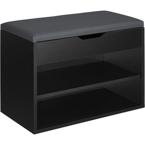 En savoir +Le porte-chaussures polyvalent de tectake met de l'ordre dans votre couloir - avec élégance. Les deux étagères ouvertes offrent suffisamment d'espace pour six paires de chaussures, tandis que le compartiment rabattable supérieur est idéal pour ranger les foulards, les gants et les chapeaux. Le confort est assuré par le siège rembourré, dont la couleur est parfaitement assortie à la surface de l'étagère. Les panneaux MDF robustes et le revêtement en mélamine confèrent à la construction compacte un haut degré de stabilité et un aspect attrayant qui peut être facilement combiner avec différents styles d'ameublement.