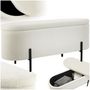 Ce coffre avec espace de rangement vous offre la possibilité idéale de ranger vos affaires de manière ordonnée et discrète. L'espace utile sous le couvercle amovible est parfait pour les couvertures, coussins ou autres objets que vous souhaitez garder à portée de main mais hors de vue. Ainsi, votre intérieur reste toujours bien rangé tout en vous offrant une assise confortable.