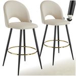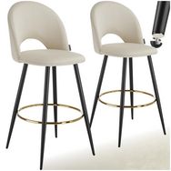 Chaise de bar en velours rembourré crème/noir Ensemble de 2 pièces