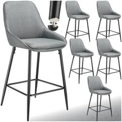 Chaise de bar rembourrée avec une housse douce Tissu gris/noir Ensemble de 6 pièces