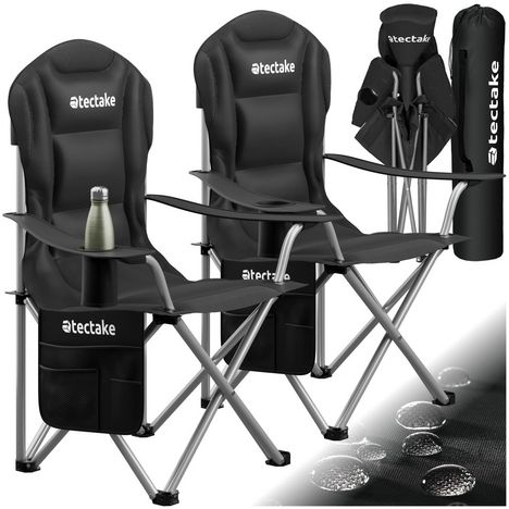 Chaise de camping rembourrée pliable avec sac de transport inclus noir Ensemble de 2 pièces