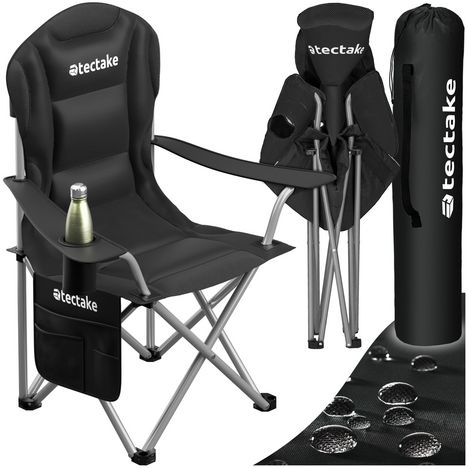 Chaise de camping rembourrée pliable avec sac de transport inclus noir