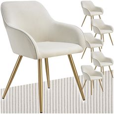 Chaise de salle à manger rembourrée en velours côtelé crème/or Lot de 6