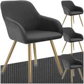 Chaise de salle à manger rembourrée en velours côtelé gris anthracite/jaune or Lot de 4