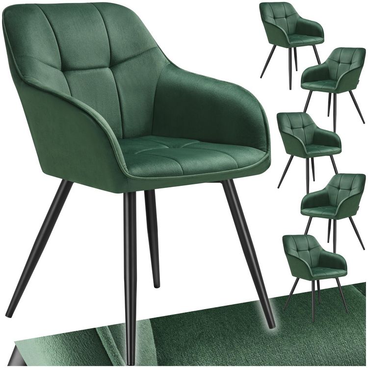 Chaise de salle à manger rembourrée et en velours matelassé vert foncé/noir Lot de 6