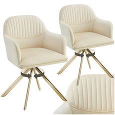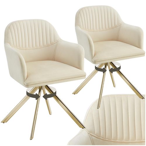 Chaise pivotante en velours rembourrée crème/or Lot de 2