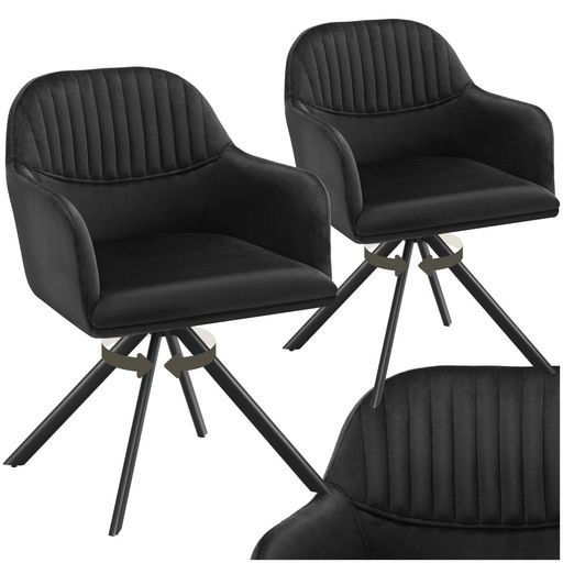 Chaise pivotante en velours rembourrée noir/noir Lot de 2