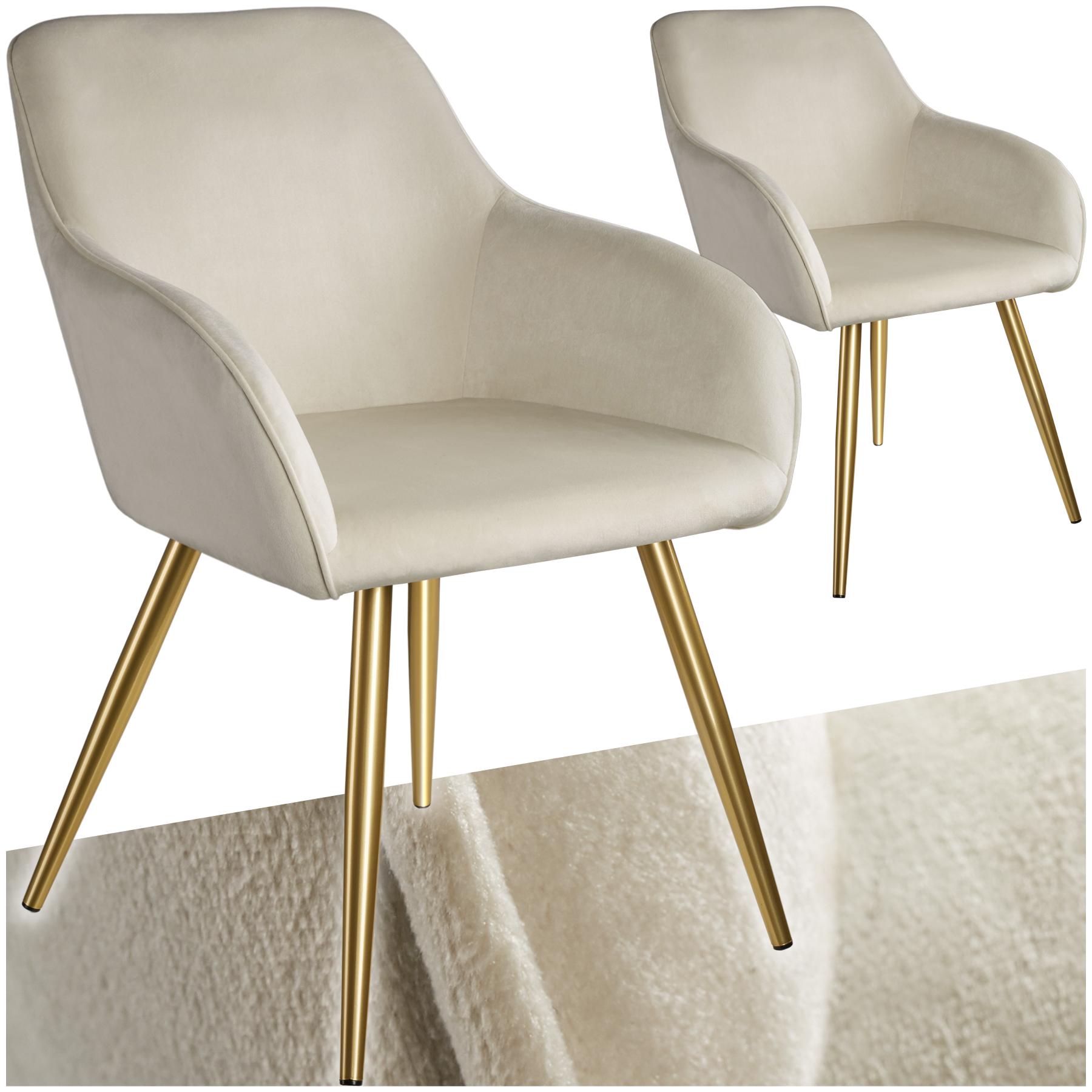 Chaise rembourrée aspect velours crème/or Lot de 2