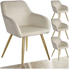 Chaise rembourrée aspect velours crème/or Lot de 4