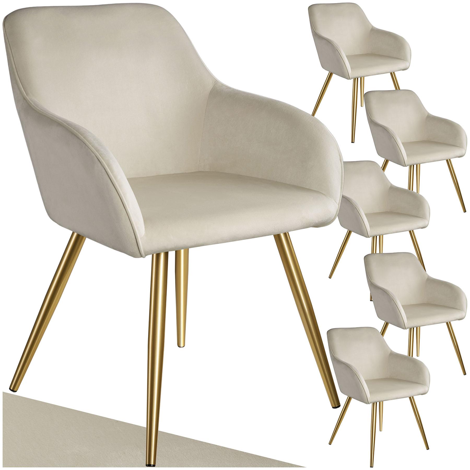 Chaise rembourrée aspect velours crème/or Lot de 6