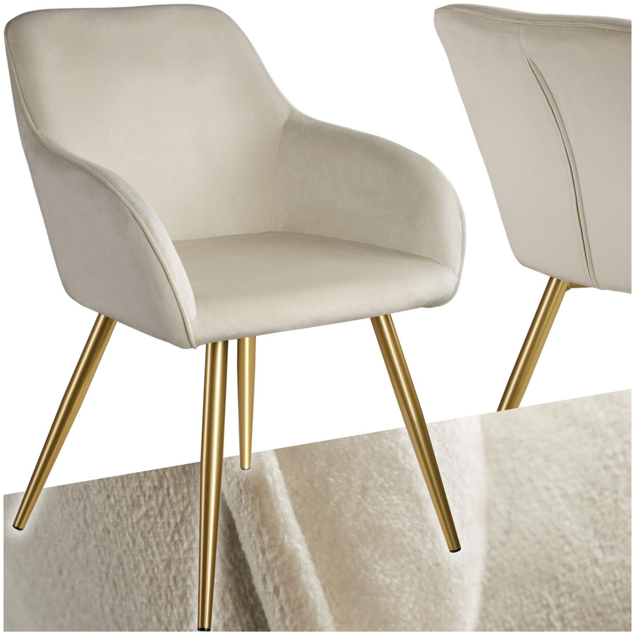Chaise rembourrée aspect velours crème/or