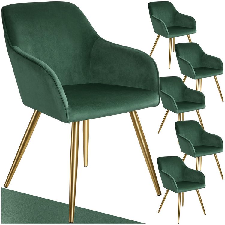 Chaise rembourrée aspect velours vert foncé/or Lot de 6