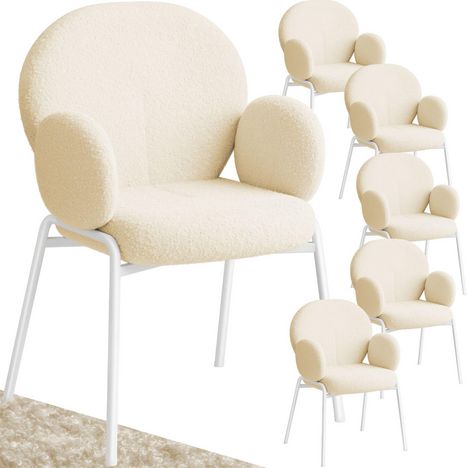 Chaise rembourrée avec revêtement en tissu bouclette crème Lot de 6