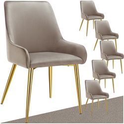 Chaise rembourrée en velours rembourré taupe Lot de 6