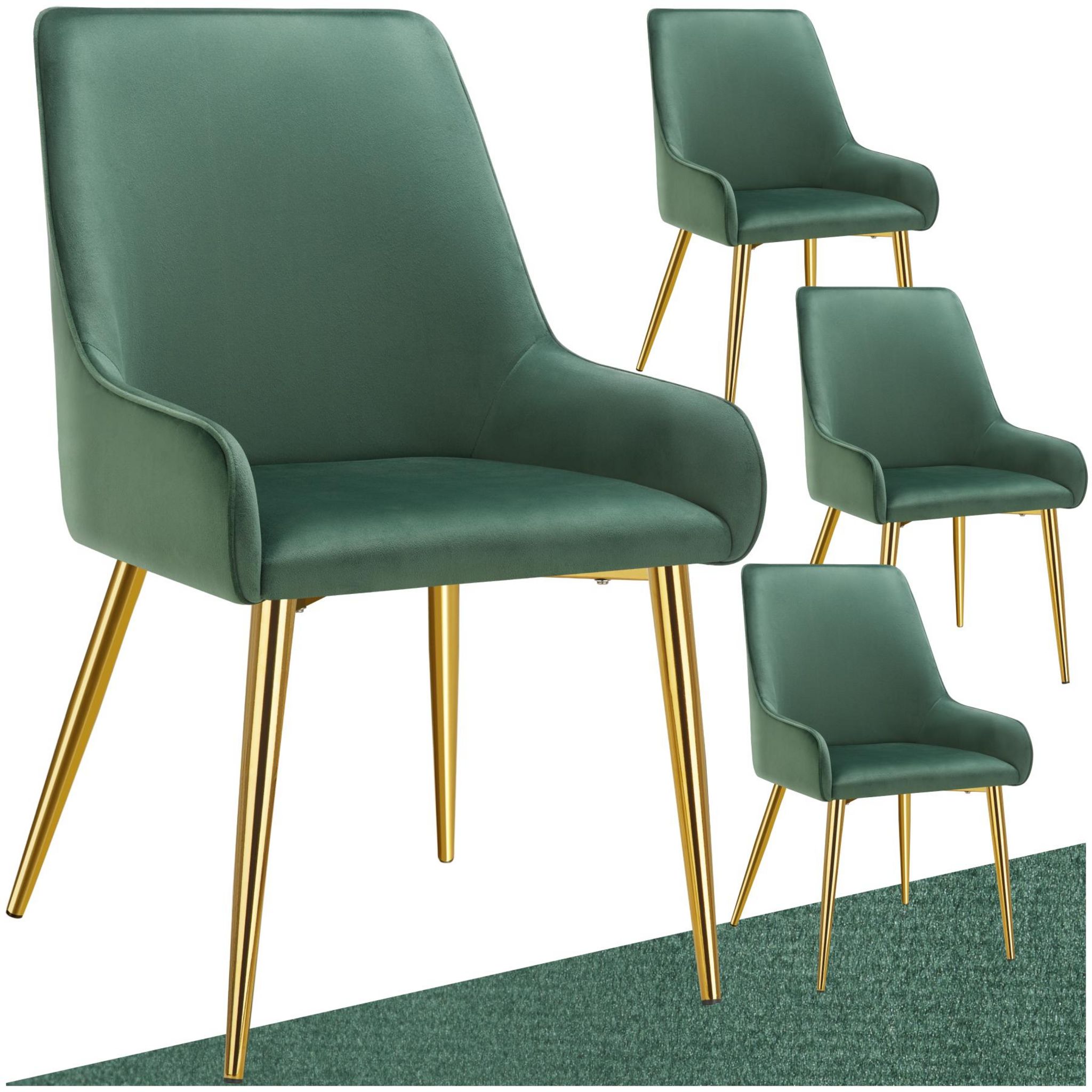 Chaise rembourrée en velours rembourré vert Lot de 4