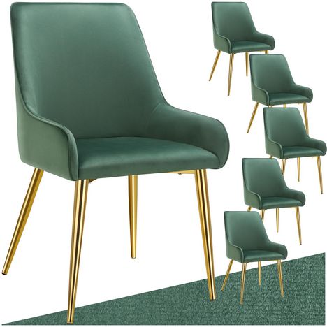Chaise rembourrée en velours rembourré vert Lot de 6