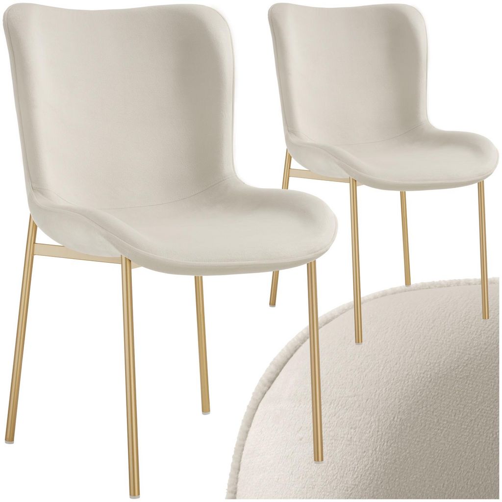 Chaise rembourrée forme ergonomique avec dossier haut Aspect velours beige/doré Lot de 2
