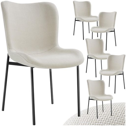Chaise rembourrée forme ergonomique avec dossier haut Tissu blanc cassé/noir Lot de 6