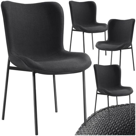 Chaise rembourrée forme ergonomique avec dossier haut Tissu noir/noir Lot de 4