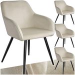 Notre chaise élégante rembourrée tectake effet velours ajoutera une touche glamour dans votre maison. Les différents revêtements sont disponibles dans une très large palette de couleurs et vous pouvez même combiner cette chaise avec votre intérieur. Le cadre en acier robuste vous assure une bonne stabilité et une grande résistance. Pour amortir le bruit et pour empêcher les rayures, les pieds élancés de notre chaise de salle à manger sont dotés d'embouts en plastique. Le dossier large et rembourré et les accoudoirs se caractérisent par un confort optimal : beau et pratique à la fois.