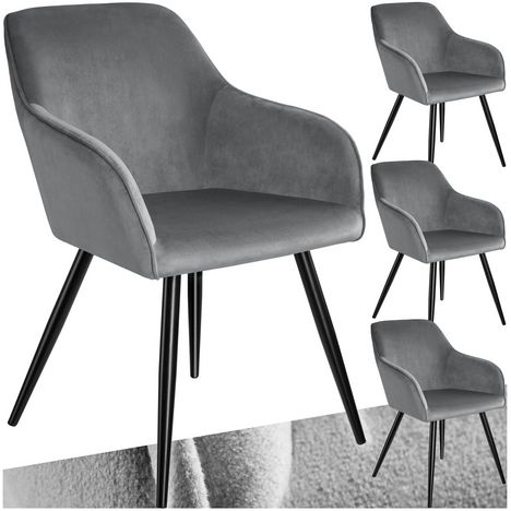 Chaise style scandinave rembourrée aspect velours gris/noir Lot de 4