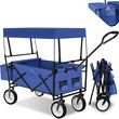 Chariot de jardin et de transport pliable avec toit bleu