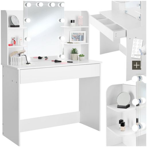 L'un des atout majeurs de cette coiffeuse est son éclairage LED qui peut être fixé de manière flexible: soit avec des tampons adhésifs double face, soit avec des ventouses, les deux étant incluses dans la livraison. Grâce à sa fonction de gradation continue et aux trois différentes températures de couleur disponibles, pour pouvez personnaliser l'éclairage selon l'ambiance, que ce soit la lumière du jour pour le maquillage du matin ou une lumière douce et chaude pour le soir? Cette coiffeuse s'adapte idéalement à vos besoins.