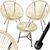 En savoir +L'ensemble table et chaises de jardin Santana tectake est notre coup de coeur ! Son design un brin rétro s'accorde avec tous les types de décoration, et aussi bien en intérieur dans votre salon, votre bureau ou votre chambre qu'à l'extérieur sur la terrasse ou le balcon ! La structure en acier des fauteuils oeuf est habillée de cordes en polyéthylène qui épousent les formes de votre corps pour une assise confortable. La table basse est ornée d'un plateau en verre pour y déposer votre café ou en-cas. Choisissez la couleur qu'il vous plait et faites entrer le design chez vous avec notre salon de jardin tectake !