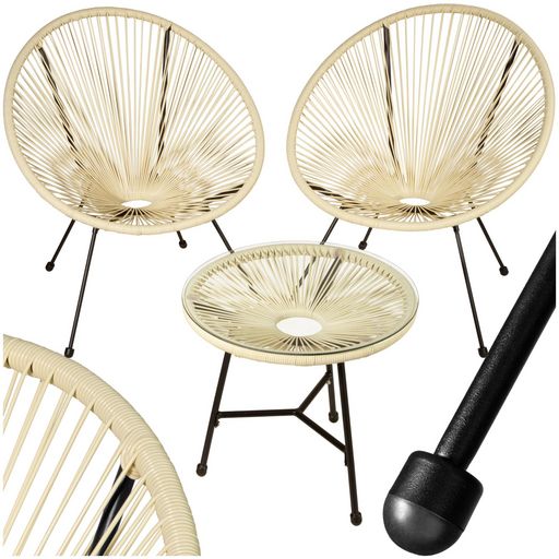 Ensemble de 2 chaises de jardin avec table design rétro dans le style Acapulco beige