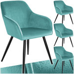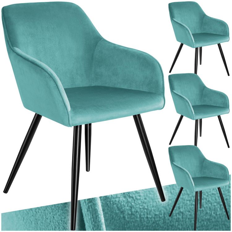 Ensemble de 4 chaises cuir synthétique aspect velours turquoise/noir