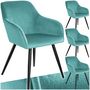 En savoir +Notre chaise élégante rembourrée tectake effet velours ajoutera une touche glamour dans votre maison. Les différents revêtements sont disponibles dans une très large palette de couleurs et vous pouvez même combiner cette chaise avec votre intérieur. Le cadre en acier robuste vous assure une bonne stabilité et une grande résistance. Pour amortir le bruit et pour empêcher les rayures, les pieds élancés de notre chaise de salle à manger sont dotés d'embouts en plastique. Le dossier large et rembourré et les accoudoirs se caractérisent par un confort optimal : beau et pratique à la fois.