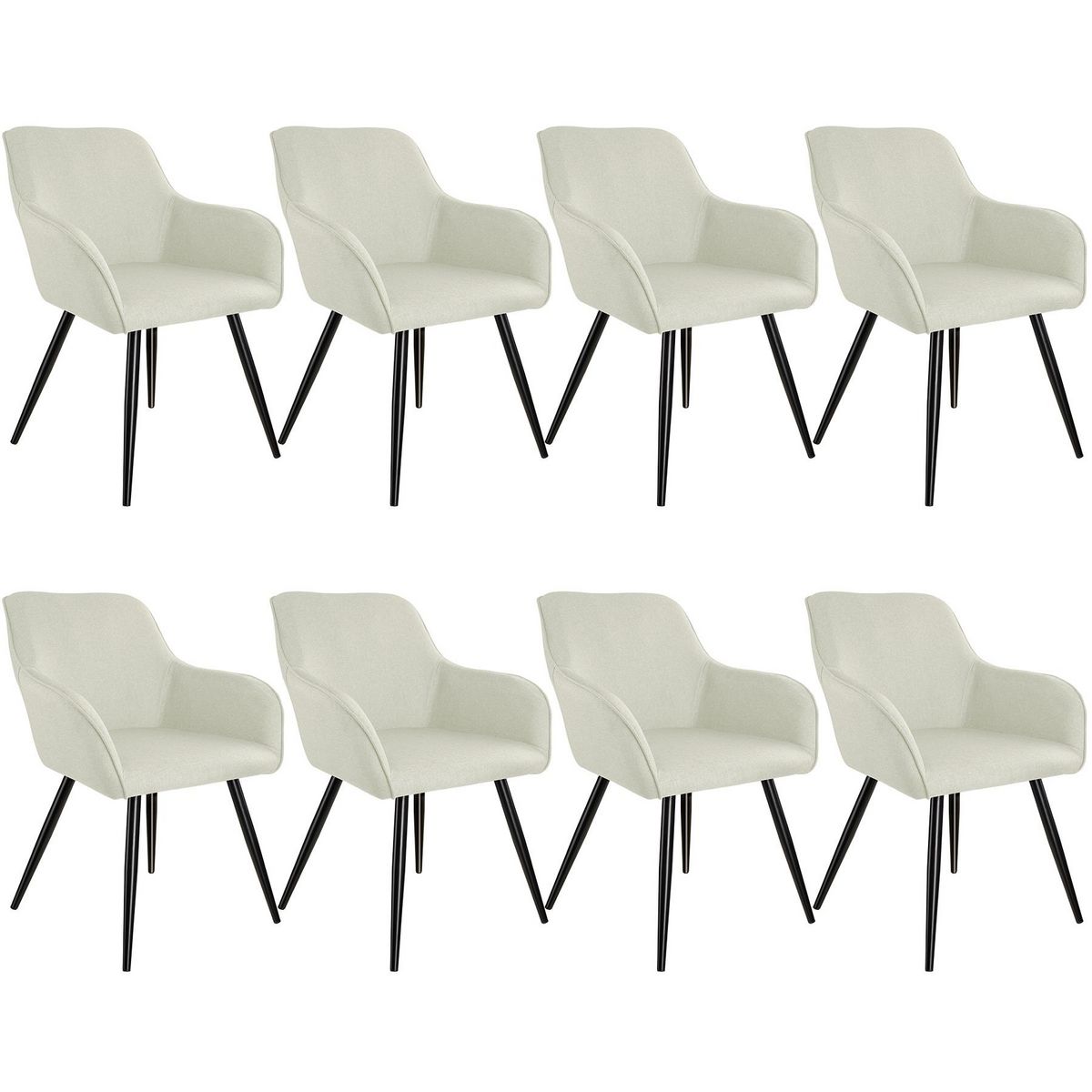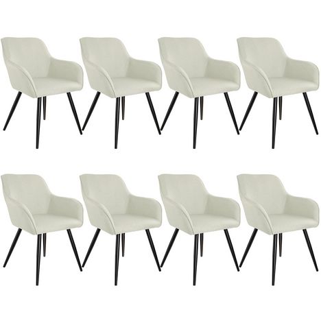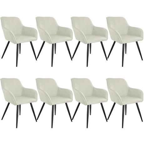 Ensemble de 8 chaises en aspect lin siège rembourré crème/noir