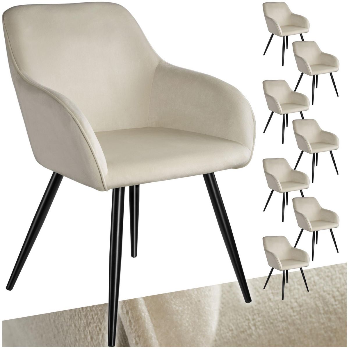 Ensemble de 8 chaises en cuir synthétique aspect velours crème et noir