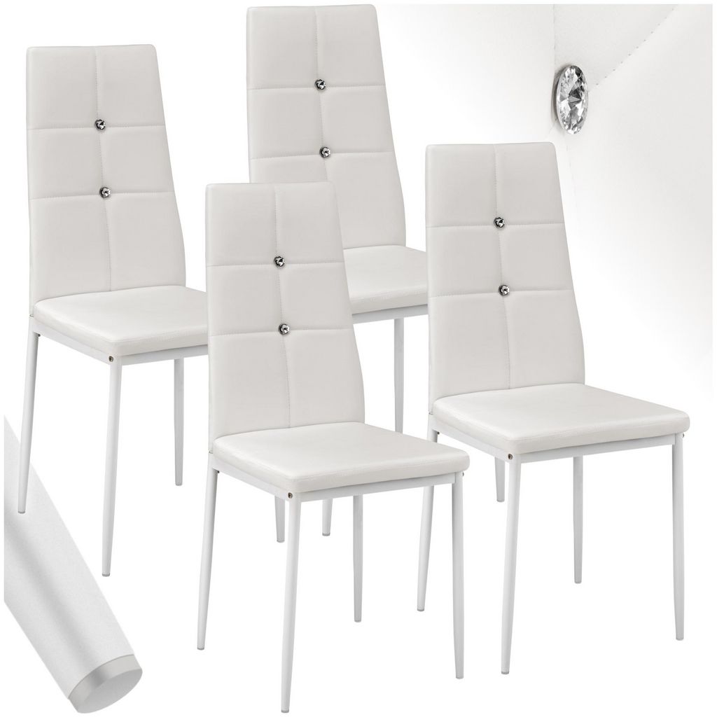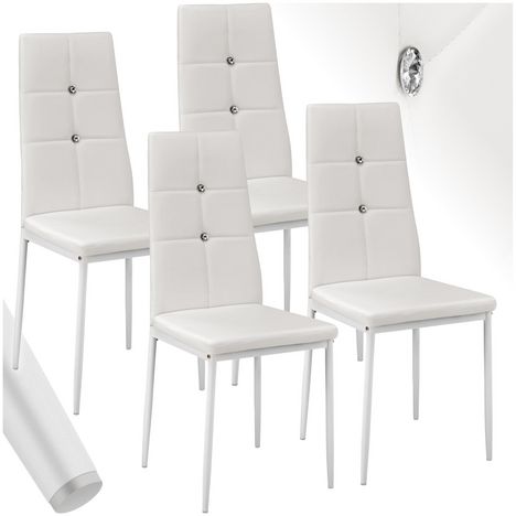 En savoir +4 Chaises de Salle à Manger, Chaises de Cuisine, Mobilier de Salon Design TECTAKE. À la fois épuré et moderne, cet ensemble de chaises élégantes embellira votre salle à manger, votre cuisine, la salle d'attente de votre cabinet, ou encore votre café. Nos chaises sont légères et très confortables. Leur assise présente un niveau de confort remarquable. Le revêtement en matière synthétique résistant est agréable et facile à nettoyer. Les pierres effet diamant incrustées sur chaque côté du dossier apportent une touche design à ces chaises.
